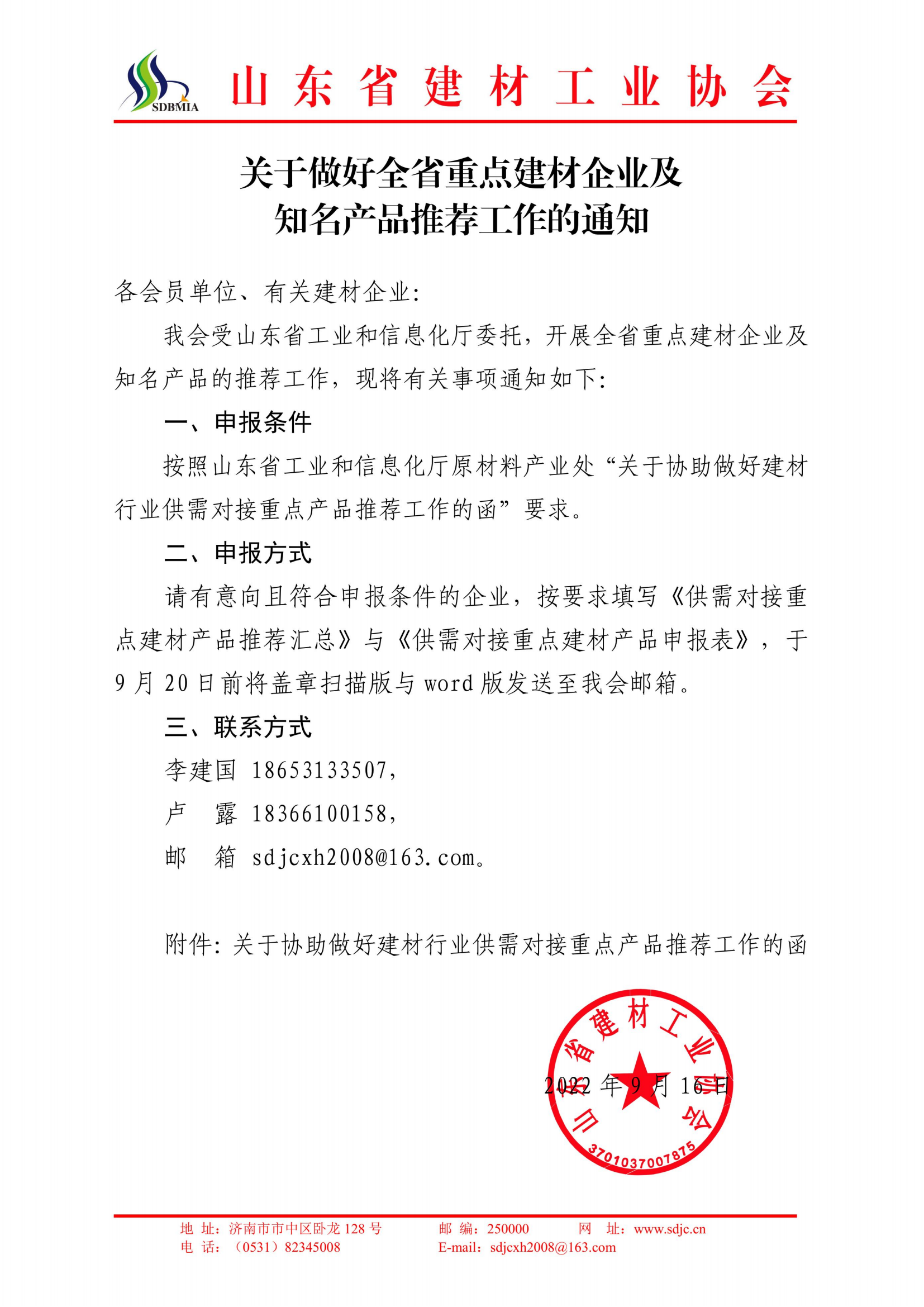 關于協助做好建材行業供需對接重點產品推薦工作的函
