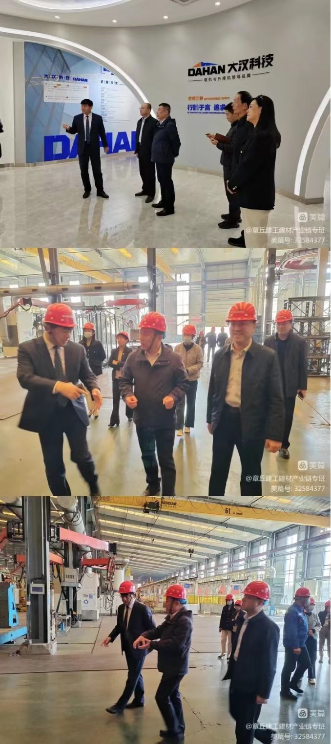 在大漢科技股份有限公司董事長康與宙、總經(jīng)理張茹的陪同下,參觀了公司展廳和智能工廠生產(chǎn)情況,現(xiàn)場察看了塔機自動化焊接生產(chǎn)線、升降機標準節(jié)自動焊接生產(chǎn)線、塔機電泳涂裝生產(chǎn)線等企業(yè)現(xiàn)代化智能生產(chǎn)系統(tǒng),就企業(yè)市場拓展、外經(jīng)外貿(mào)、科技研發(fā)、發(fā)展方向等進行了深入探討。