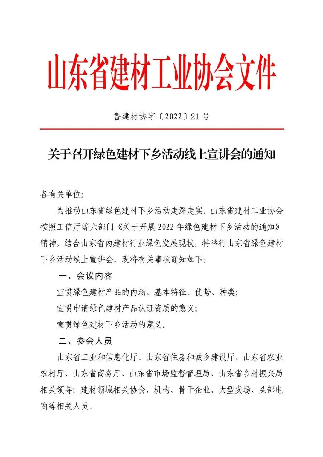 山東省建材工業協會關于召開綠色建材下鄉活動線上宣講會的通知