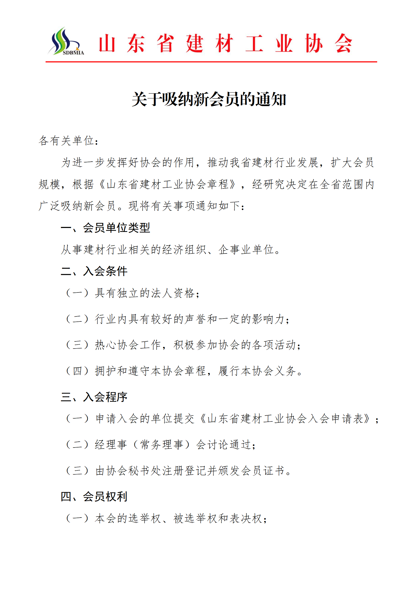 山東省建材工業協會關于吸納新會員的通知