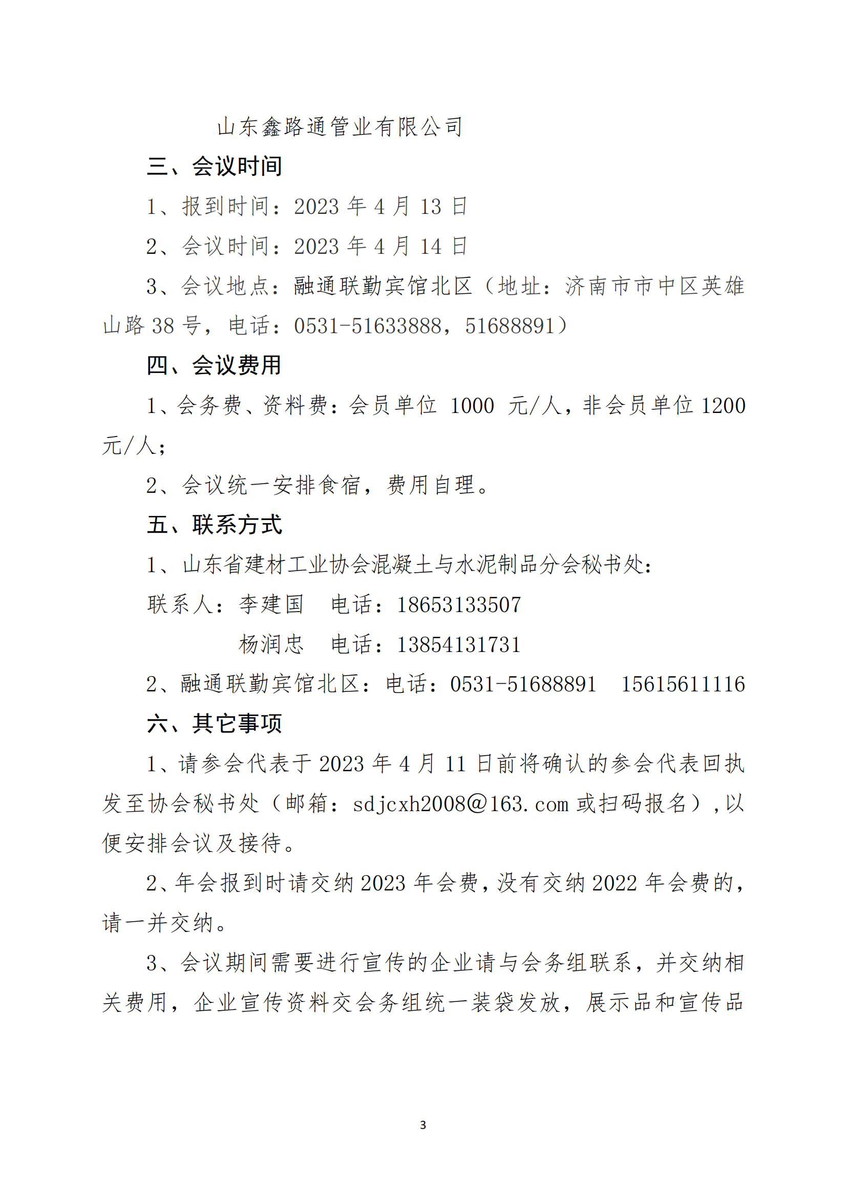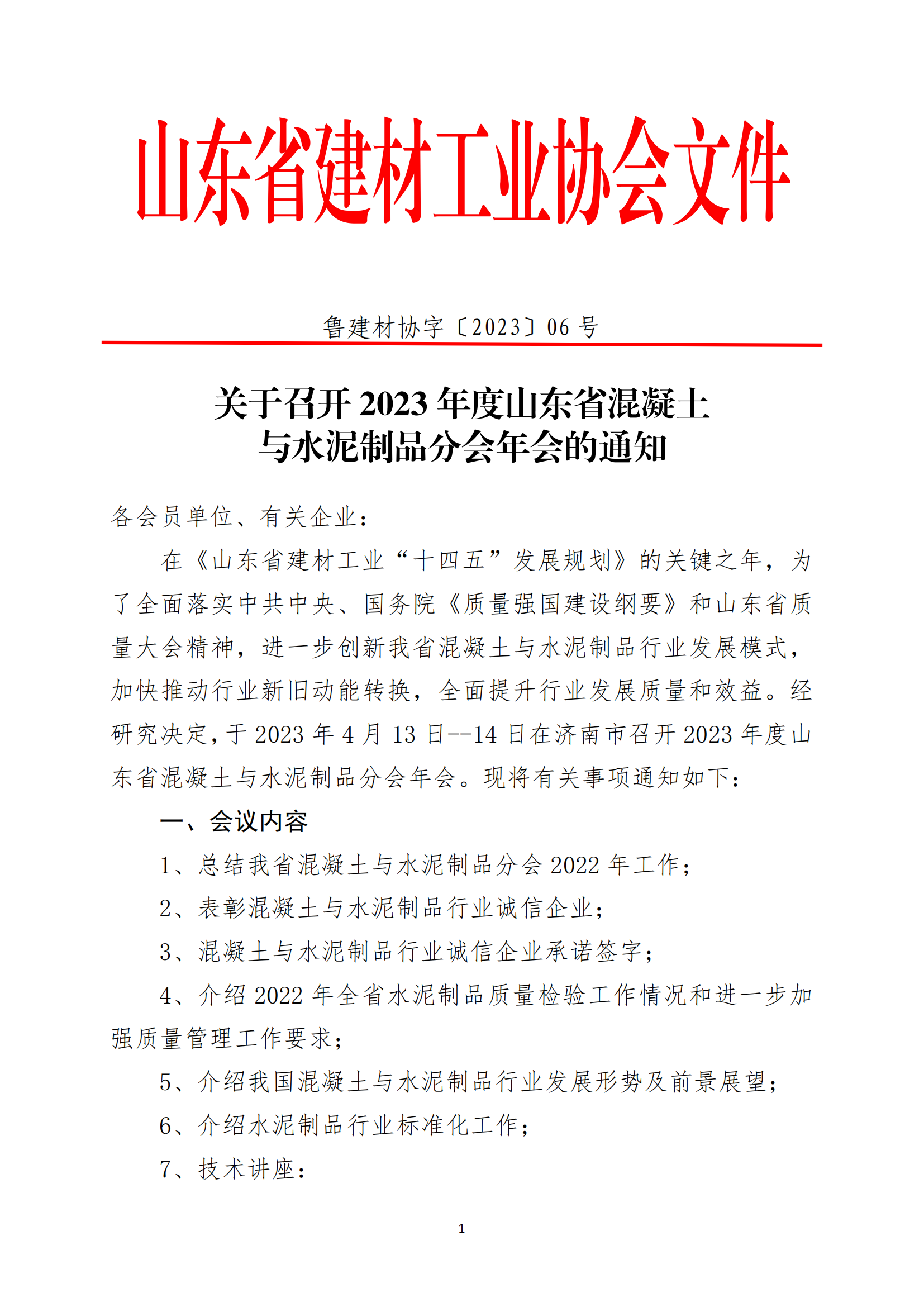 山東省建材工業協會關于召開2023年度山東省混凝土與水泥制品分會年會的通知