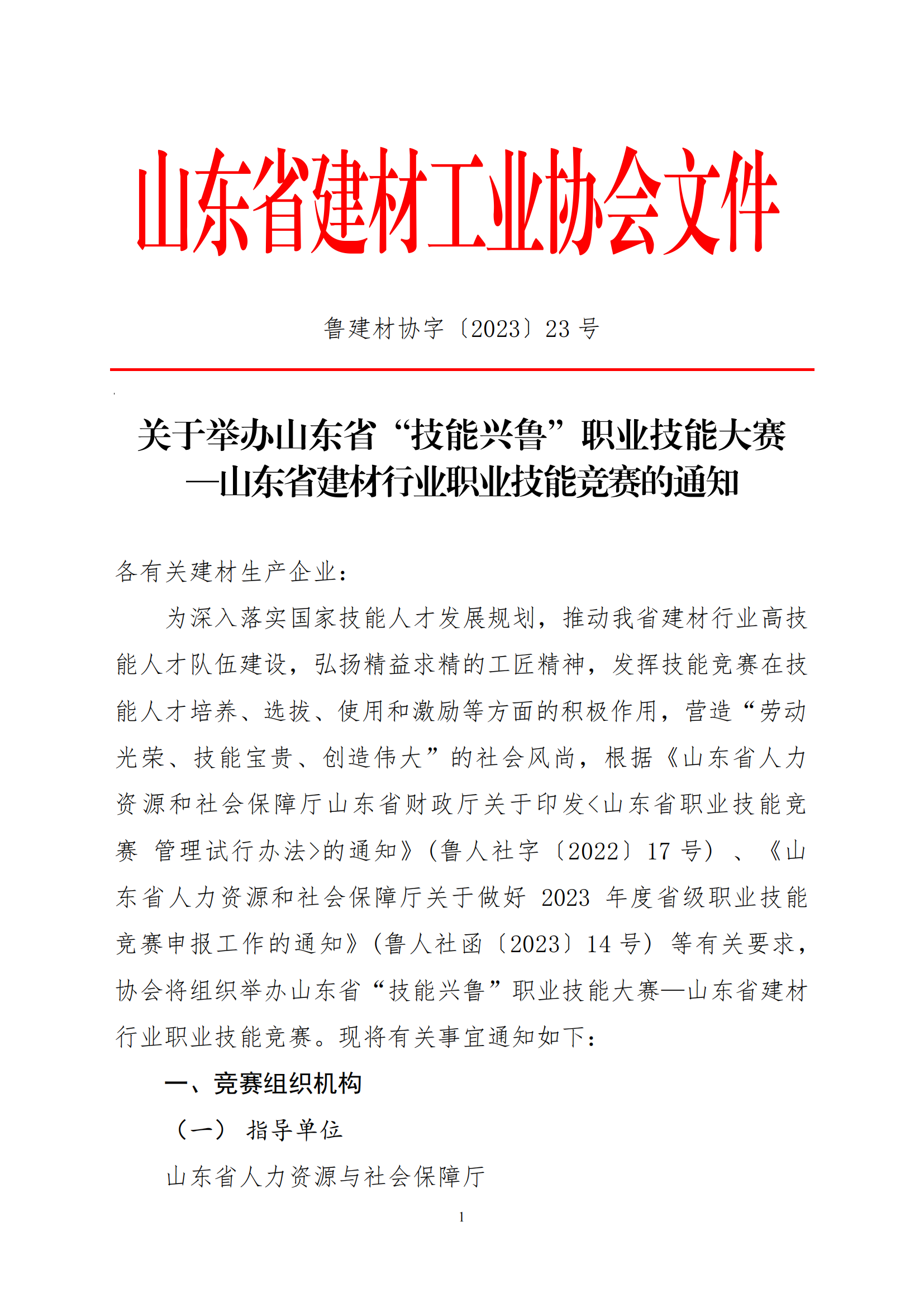 關于舉辦山東省“技能興魯”職業技能大賽—山東省建材行業職業技能競賽的通知