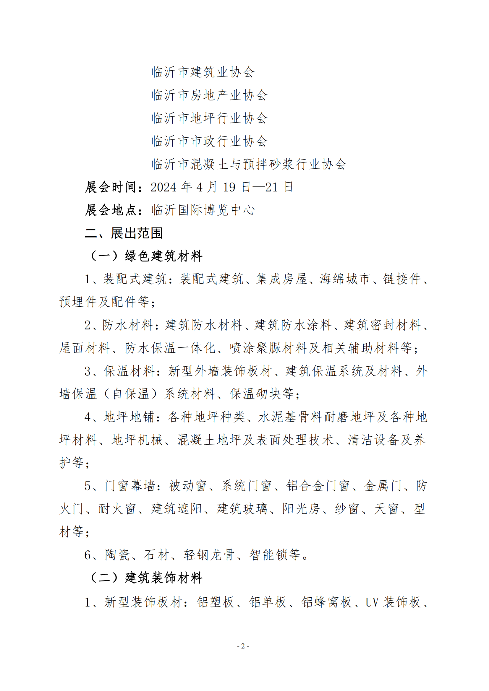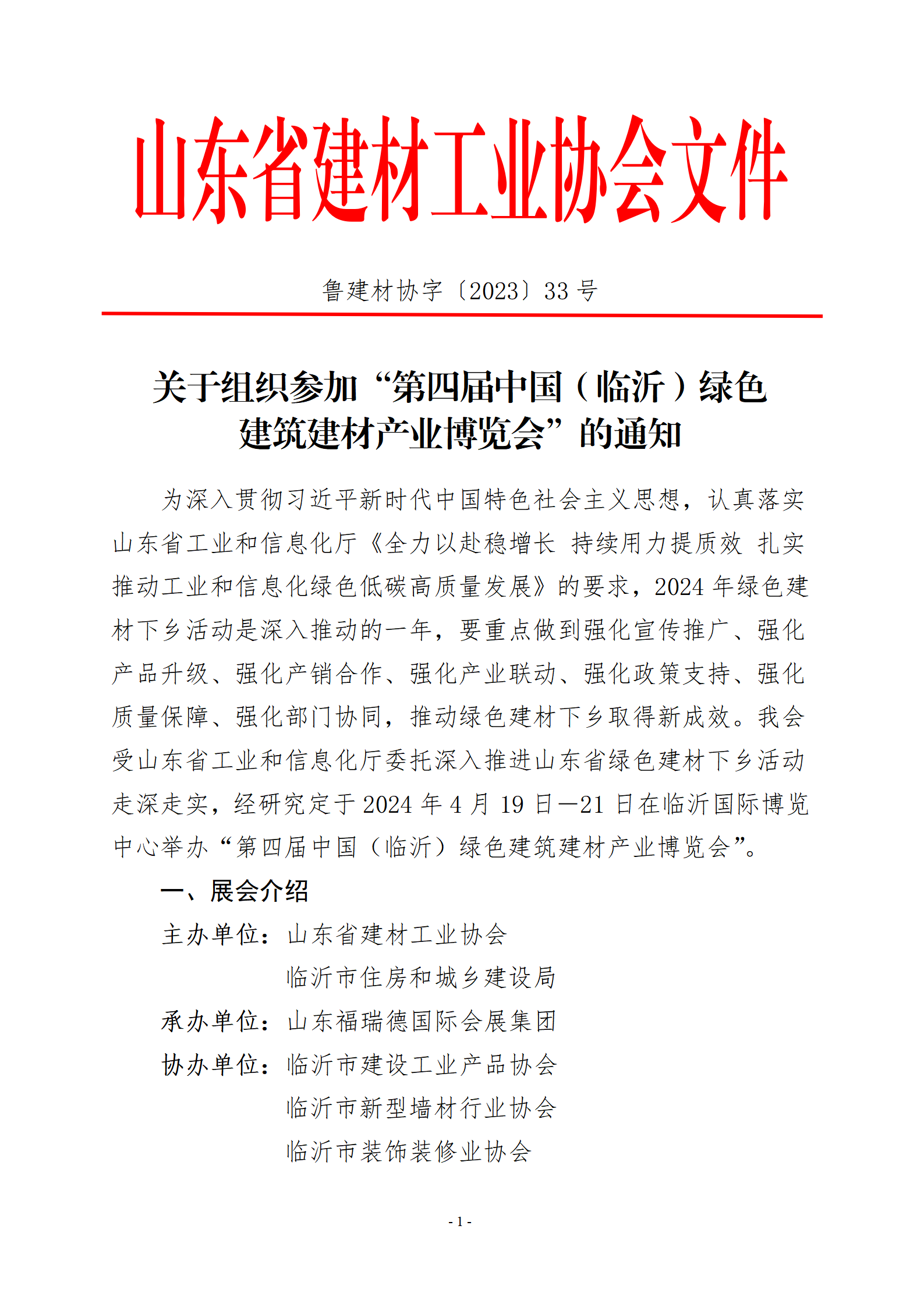 山東省建材工業協會關于組織參加“第四屆中國(臨沂)綠色建筑建材產業博覽會”的通知