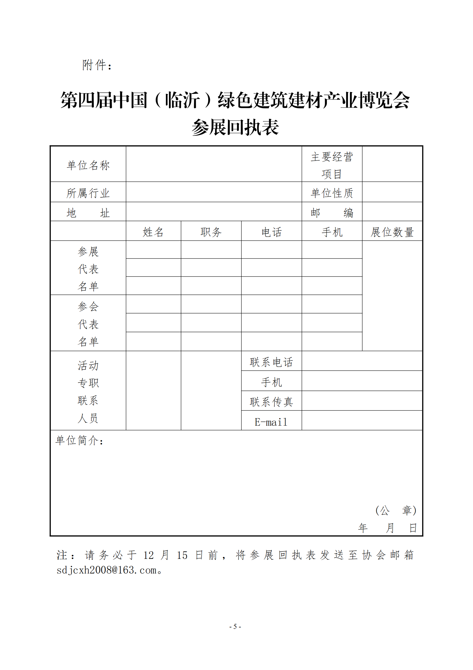 附件:第四屆中國(臨沂)綠色建筑建材產業博覽會參展回執表