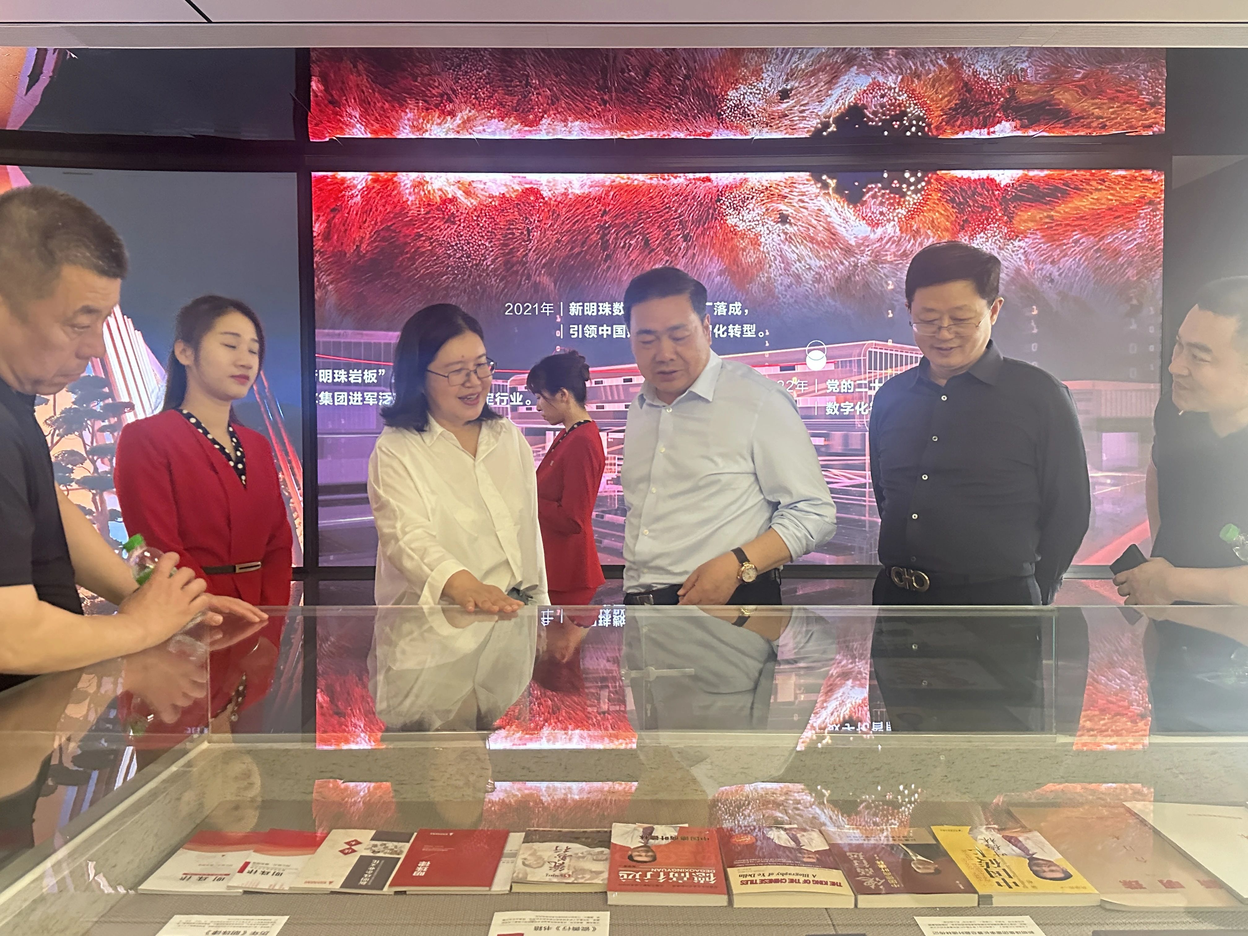 當天下午,調研組一行走進新明珠集團營銷總部。新明珠集團黨委書記、董事、副總裁陳先輝對于新明珠的生產工藝改進,品牌建設,新產品與新技術等進行了全方位的介紹。陳先輝說,新明珠克服國外十年技術封鎖建成了中國首個綠色智能制造示范工廠,推動了陶瓷乃至建材行業(yè)智能制造發(fā)展,大大提升了生產效率。在座談會環(huán)節(jié),王功永表示,熱烈歡迎新明珠這樣的榜樣企業(yè)在山東投資建廠。