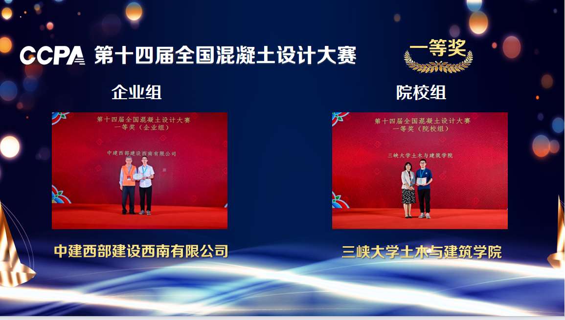 大會為第十四屆全國混凝土設計大賽企業組一等獎和院校組一等獎獲獎隊伍、第三屆“科尼樂杯”全國UHPC設計定制大賽企業組一等獎和院校組一等獎獲獎隊伍、第二屆“科尼樂杯”全國混凝土外加劑應用技術大賽——外加劑降粘與適應性大賽一等獎獲獎隊伍及“建華建材杯”第三屆全國生態混凝土創新設計應用大賽企業組一等獎獲獎隊伍頒獎。