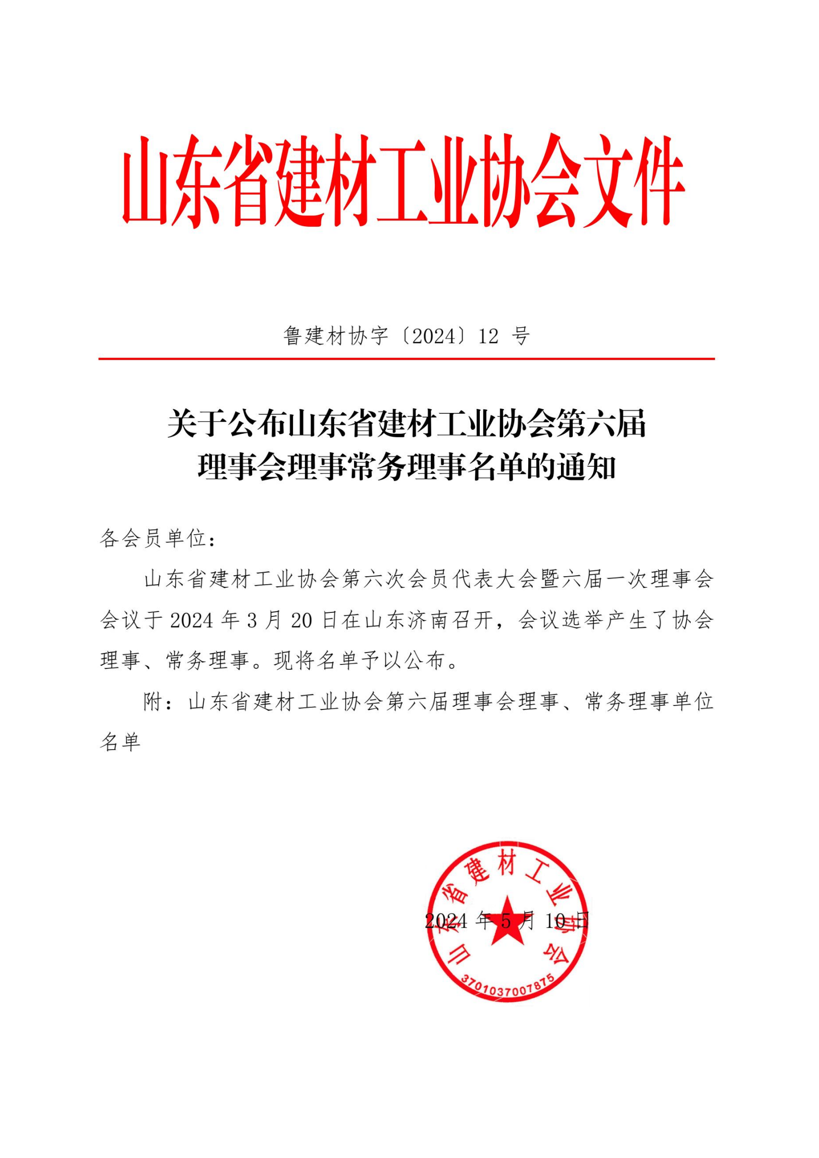 關于公布山東省建材工業協會第六屆理事會理事常務理事名單的通知