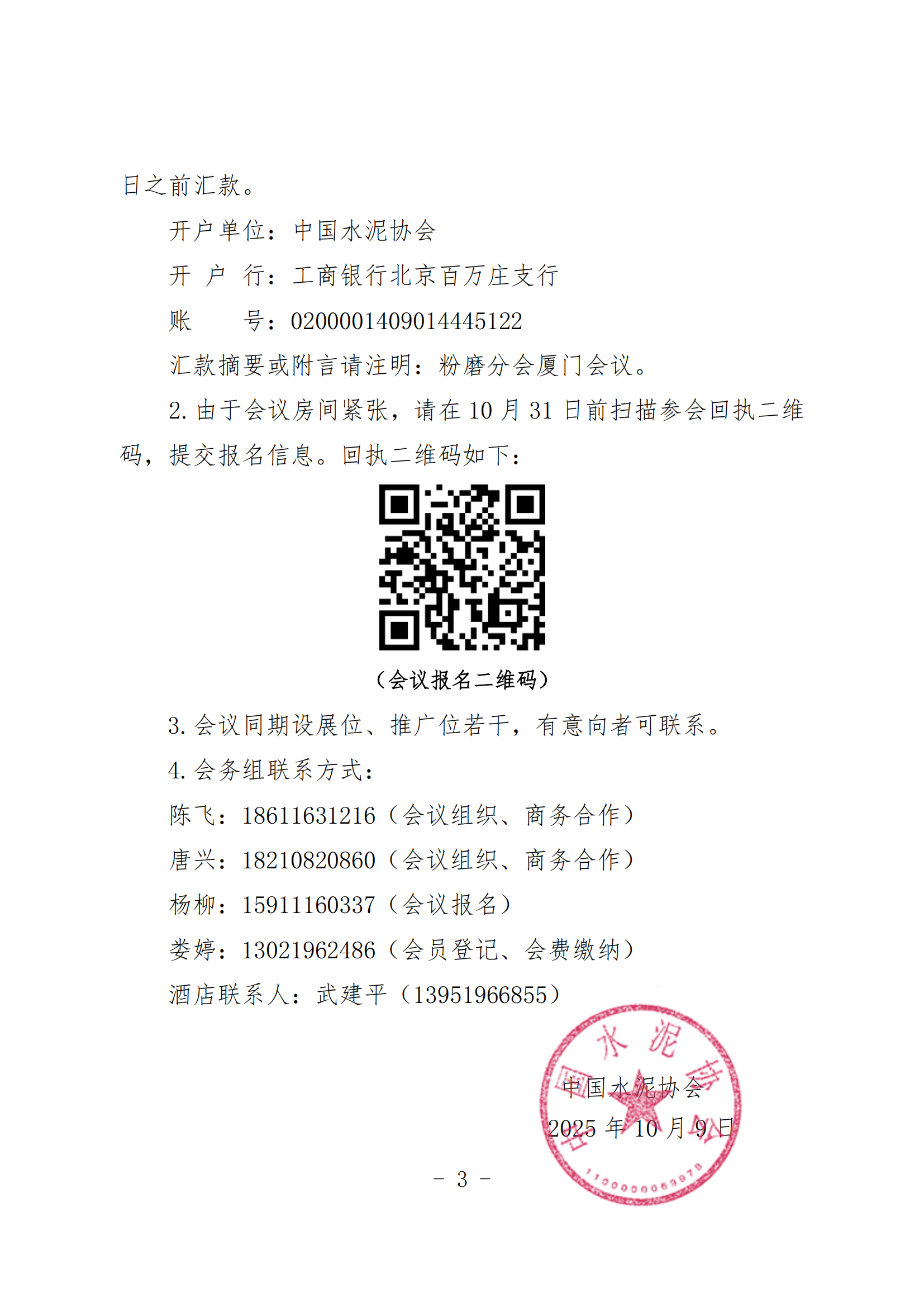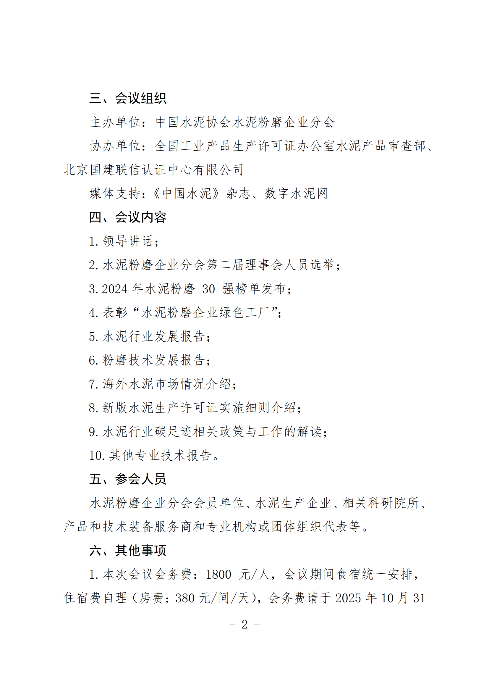中國水泥協(xié)會關(guān)于召開2025年中國水泥協(xié)會水泥粉磨企業(yè)分會年會暨第二屆會員代表大會的通知