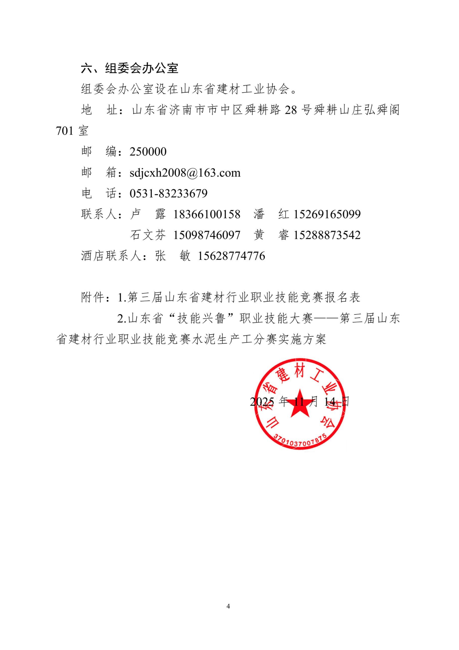 魯建材協(xié)字〔2025〕34號關(guān)于舉辦山東省“技能興魯”職業(yè)技能大賽——第三屆山東省建材行業(yè)職業(yè)技能競賽水泥生產(chǎn)工分賽的通知